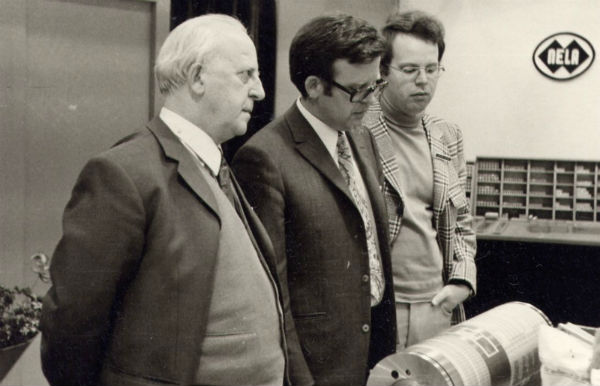 The picture below shows NELA founder Ernst Neumeister (front), his son Manfred Neumeister and his nephew Reinhard Neumeister with a magnetic cylinder at drupa 1972. At that time, Nyloprint printing plates were still in use.