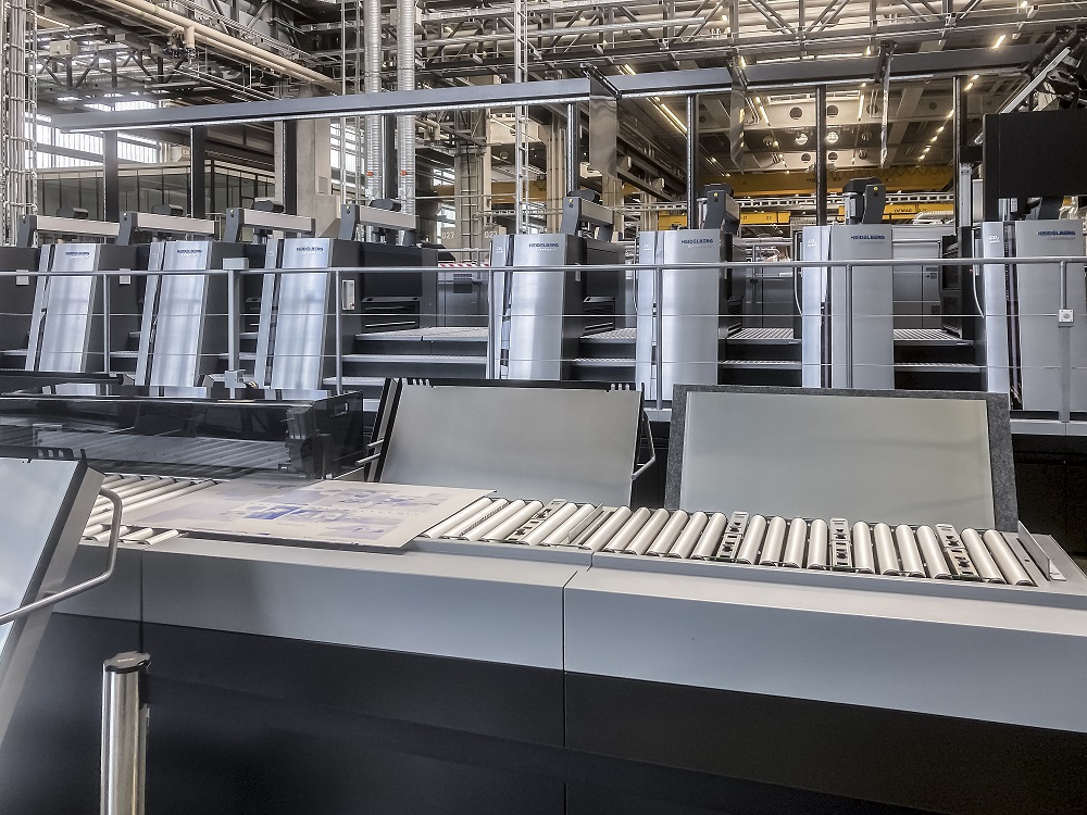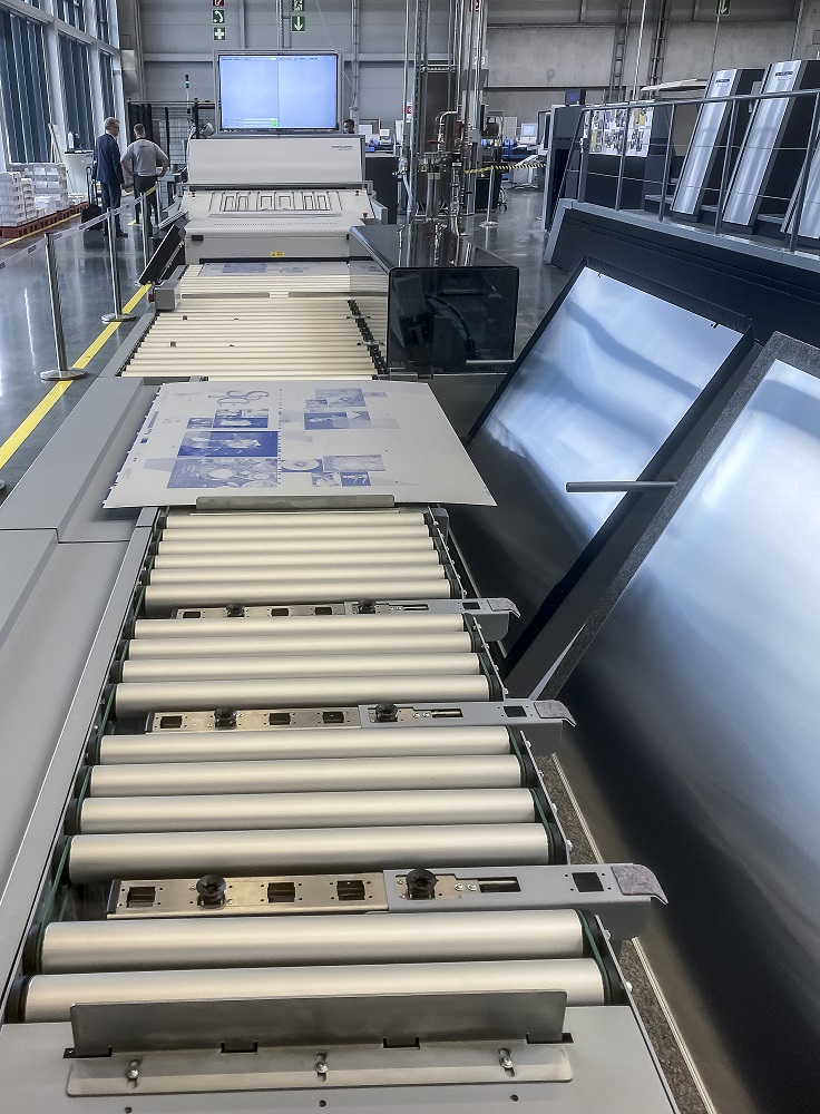 For several years now, two fully automatic NELA bending systems, each installed in-line with a Heidelberg Suprasetter, have been producing printing plates for the live demos in the PMC. "Showtime" was about fully autonomous production in highly industrialized printing companies, the focus here is on Heidelberg's Plate to Unit system. With the automated loading and unloading of the printing plates, plate changes are carried out much faster and the utilization of the printing press increases. While one signature is being printed, printing plates for the next one can be made available directly at the printing press.