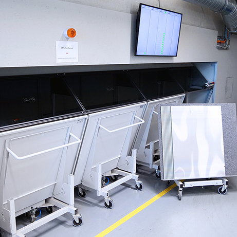Mit der Inbetriebnahme der Anlage haben wir auch unsere Prozesse angepasst. Die Druckplatten werden in der Spät- und Nachschicht von der Abteilung Druck belichtet. Durch die Just-in-Time-Produktion der Druckplatten ist das Umsetzen der Druckplatten auf andere Wagen nur in Ausnahmefällen notwendig. Manuellen Kontakt mit den Druckplatten können wir so auf ein absolutes Minimum reduzieren.